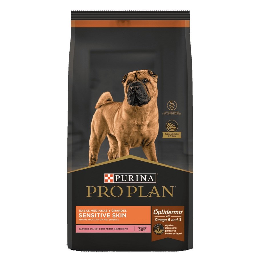 ProPlan Sensitive Skin Salmon/Arroz provee nutrición de avanzada para ayudar a minimizar el riesgo de la irritación de la piel asociada con la sensibilidad alimentaria.